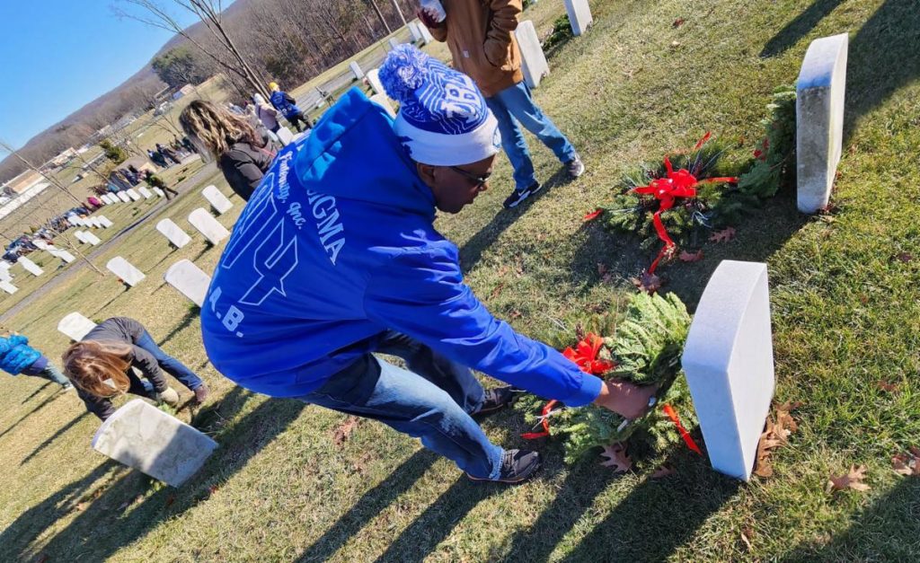 the brothers of the Chi Sigma Chapter along with family, friends, and community members, gathered at the Northern New Jersey Veterans Memorial Cemetery in Sparta, NJ, for a deeply moving Wreath Laying Ceremony. This annual event is part of a national initiative to honor and remember the sacrifices of our nation’s veterans during the holiday season.